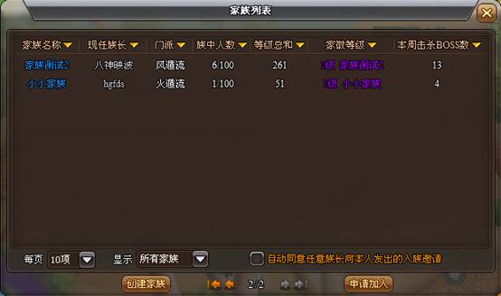 在家族列表中選擇自己喜歡的家族申請(qǐng)加入,如果族長(zhǎng)同意就可以進(jìn)入家族了。