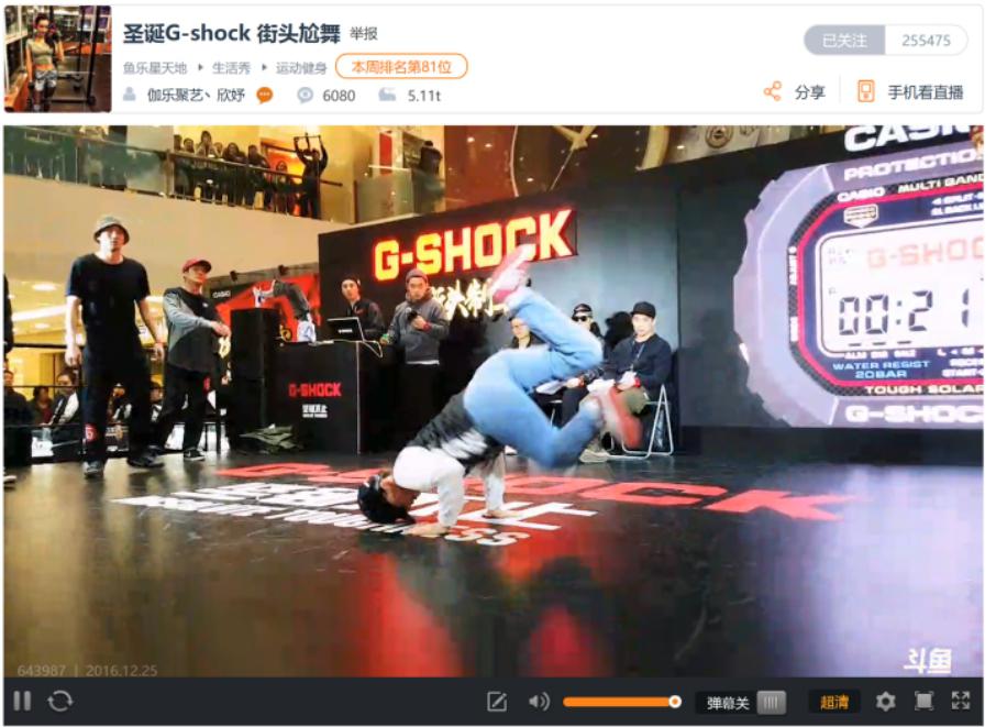 時間:2016-12-27 09:20:35 來源:廠商提供 作者:douyutv0212月25日,由斗魚獨家全程直播的G-SHOCK街頭制霸CITY BATTLE城市對抗賽北京站精彩落幕。我們斗魚運動女郎于欣妤陪伴廣大水友們度過了一個活力四射的圣誕節(jié)!同時,大家也再次感受到了堅韌不止G-SHOCK街頭制霸賽的魅力!下面,讓我們一起回顧一下G-SHOCK街頭制霸賽的精彩瞬間吧!