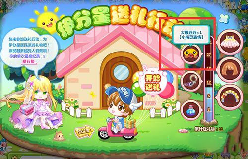 在活動中騎上單車去送禮,累積運送27個禮物就可以獲得獎勵大眼豆豆小精靈表情了。