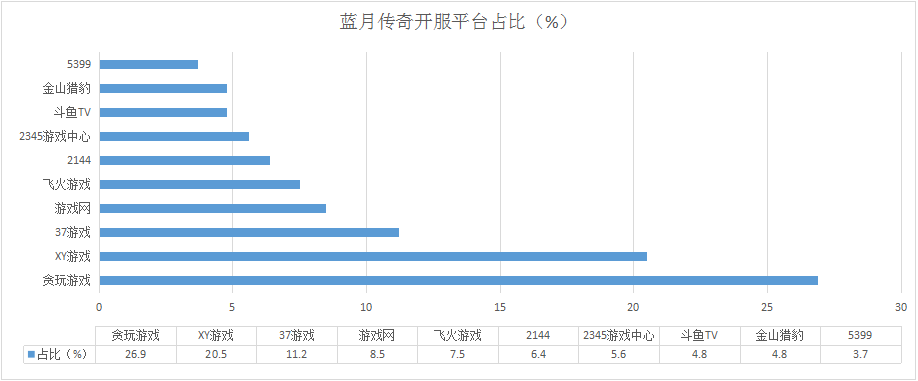 本周《藍(lán)月傳奇》開服有微降,各平臺開服占比未發(fā)生太大變化,新增分布占比平臺斗魚TV、5399。