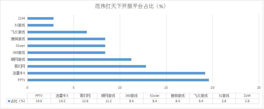 本周《范偉打天下》開服有所下滑,飛火游戲下調(diào)其開服頻率為2服/天為主要影響,其余平臺開服頻率基本未發(fā)生變化。未新增分布占比平臺。