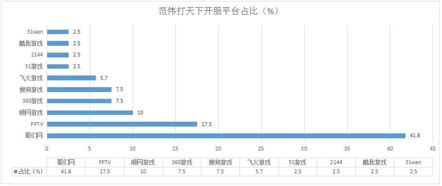 本周各平臺(tái)主打游戲分布變化不大,哥們網(wǎng)《范偉打天下》開服占比下降至51.3%,開服總數(shù)相應(yīng)減少。搜狗游戲《青云志》新晉為主打游戲,開服頻率2服/天。