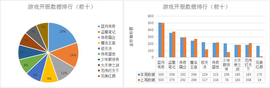 本周《藍(lán)月傳奇》開服數(shù)保持穩(wěn)定,各平臺開服分布未發(fā)生顯著變化;新增分布占比平臺602游戲、金山獵豹。