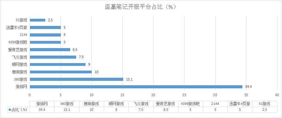 本周《盜墓筆記》開服總數(shù)較上周略有減少,但在各平臺的分布占比未發(fā)生太大變化;未新增分布占比平臺。