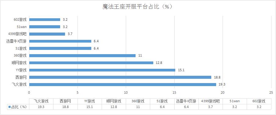 本周《魔法王座》開服數(shù)略有下降,其在西游網(wǎng)的開服占比被進(jìn)一步稀釋至18.8%;新增分布占比平臺602游戲。