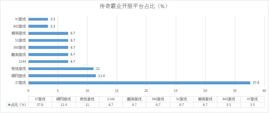 本周《傳奇霸業(yè)》開服總數(shù)有所上漲,較上周增加了5.7%,其在多個平臺的開服占比穩(wěn)定在6.7%;新增分布占比平臺602游戲。