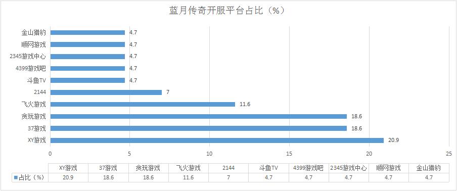 本周《藍(lán)月傳奇》開(kāi)服數(shù)略減7%,但相比其他產(chǎn)品仍保持較大領(lǐng)先優(yōu)勢(shì)。其在貪玩游戲開(kāi)服頻率被調(diào)整為8服/天,開(kāi)服占比下降至18.6%,是其開(kāi)服總數(shù)減少的主要影響因素。新增分布占比平臺(tái)斗魚(yú)TV。