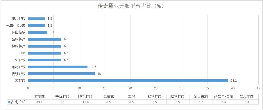 《傳奇霸業(yè)》本周開服總數(shù)小幅增漲2.1%,新增分布占比平臺酷我游戲。
