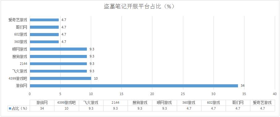本周《盜墓筆記》開服趨勢保持穩(wěn)定,其在游族網(wǎng)開服占比為34%。