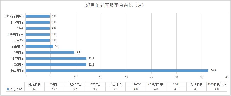 本周《藍(lán)月傳奇》開(kāi)服總數(shù)減少了2.2%,其在貪玩游戲的開(kāi)服占比回升至36.3%,并在多個(gè)平臺(tái)的開(kāi)服頻率保持在2服/天。