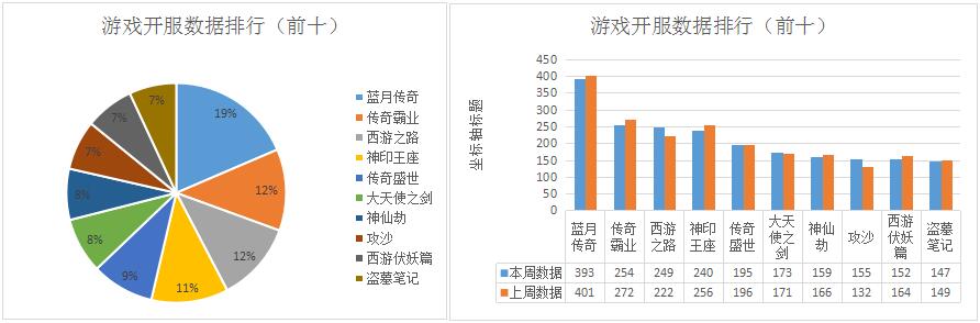 在游戲榜單方面,藍(lán)月傳奇繼續(xù)領(lǐng)跑頁(yè)游開(kāi)服榜,一周開(kāi)服總數(shù)393組,開(kāi)服數(shù)持續(xù)下滑中。排行第二的傳奇霸業(yè)開(kāi)服也有所減少。在貪玩推出了最新傳奇IP大作《傳奇世界》之后,預(yù)計(jì)將逐漸取代藍(lán)月傳奇的傳奇類頁(yè)游霸主地位。