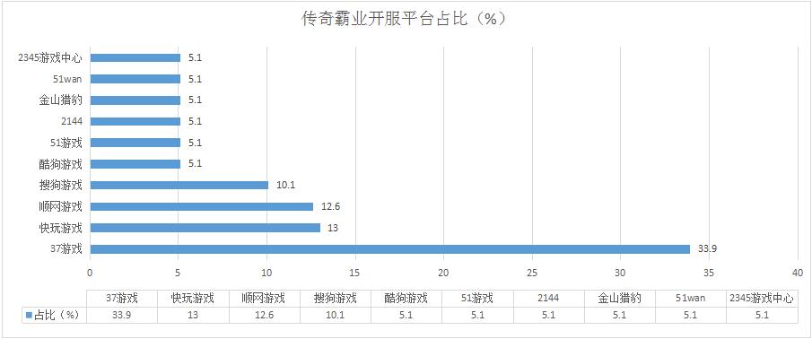 本周《傳奇霸業(yè)》開(kāi)服總數(shù)減少了6.7%,其在快玩游戲和51wan的開(kāi)服頻率皆有所下調(diào),新增分布占比平臺(tái)2345游戲中心。