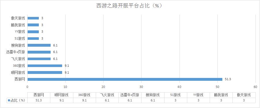 《西游之路》本周開(kāi)服總數(shù)增漲了12.2%,發(fā)展態(tài)勢(shì)良好。其在西游網(wǎng)的開(kāi)服占比再次超越半數(shù);新增分布占比平臺(tái)傲天游戲,開(kāi)服頻率1服/天。