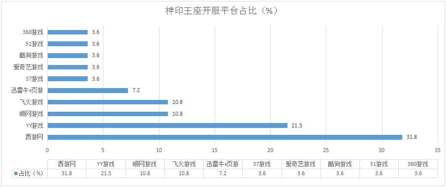 本周《神印王座》開(kāi)服總數(shù)較為穩(wěn)定,其在多個(gè)平臺(tái)的開(kāi)服占比保持在3.6%。