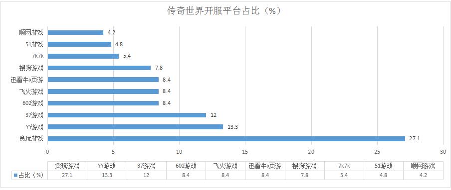 本周《傳奇霸業(yè)》開(kāi)服同樣保持穩(wěn)定,其在快玩游戲的開(kāi)服占比有所上升,新增分布占比平臺(tái)金山獵豹、酷我游戲、602游戲。