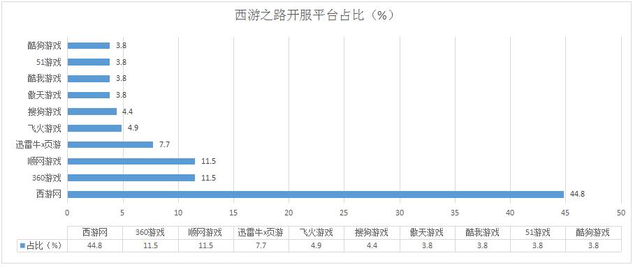 本周《西游之路》開(kāi)服總數(shù)減少了20.4%,其在西游網(wǎng)的開(kāi)服占比進(jìn)一步縮減,同時(shí)在多個(gè)平臺(tái)的開(kāi)服頻率穩(wěn)定在1服/天。