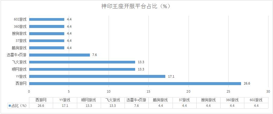 本周各運(yùn)營平臺(tái)主打游戲開服情況較上周變化不大,順網(wǎng)游戲《神印王座》重回主打游戲之列,開服頻率3服/天;YY游戲則將《傳奇世界》推為平臺(tái)第一主打游戲,開服頻率達(dá)到5服/天。