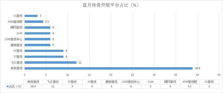 本周各運(yùn)營平臺主打游戲開服情況較上周有所變動,37游戲?qū)ⅰ赌в蛴篮恪吠茷槠脚_第二主打游戲,開服頻率高達(dá)8服/天;360游戲則將《射雕英雄傳》推為平臺主打游戲,開服頻率保持在3服/天;順網(wǎng)游戲依舊主打《龍神契約》,開服占比達(dá)到了6.5%,同時(shí)也將《傳奇霸業(yè)》和《藍(lán)月傳奇》重新放入主打游戲之列。