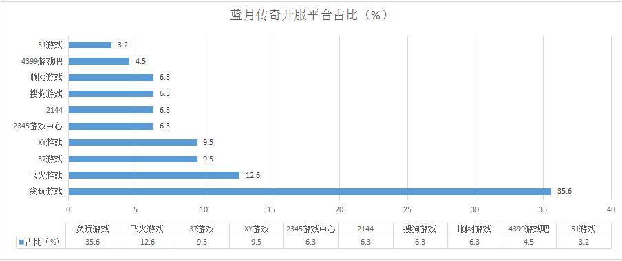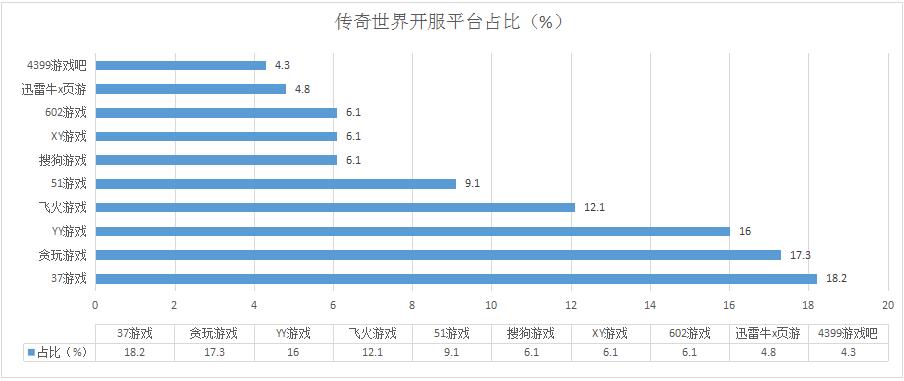 本周各運(yùn)營平臺(tái)主打游戲開服情況較上周有所變動(dòng),37游戲?qū)ⅰ赌в蛴篮恪吠茷槠脚_(tái)第二主打游戲,開服頻率高達(dá)8服/天;360游戲則將《射雕英雄傳》推為平臺(tái)主打游戲,開服頻率保持在3服/天;順網(wǎng)游戲依舊主打《龍神契約》,開服占比達(dá)到了6.5%,同時(shí)也將《傳奇霸業(yè)》和《藍(lán)月傳奇》重新放入主打游戲之列。