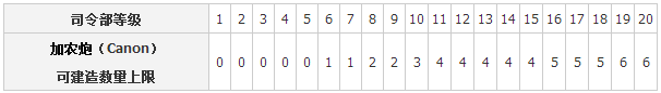 1、加農(nóng)炮建造的數(shù)量: