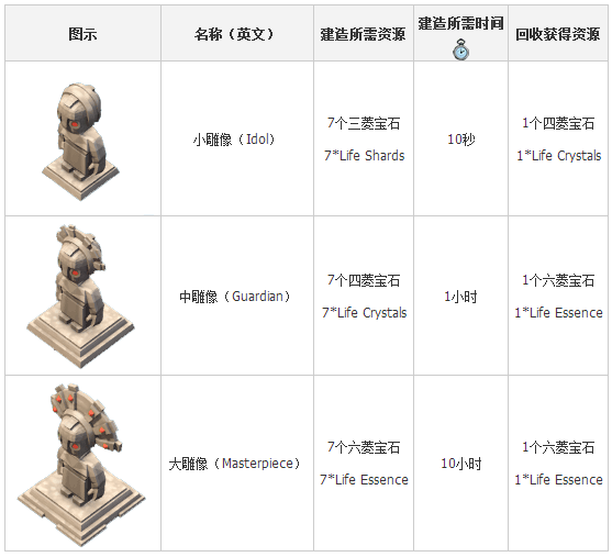 1、綠色雕像:綠色代表生命,綠色水晶可以合成出資源類相關(guān)的雕像,效果主要是按百分比增加金、木、石、鐵產(chǎn)量等。