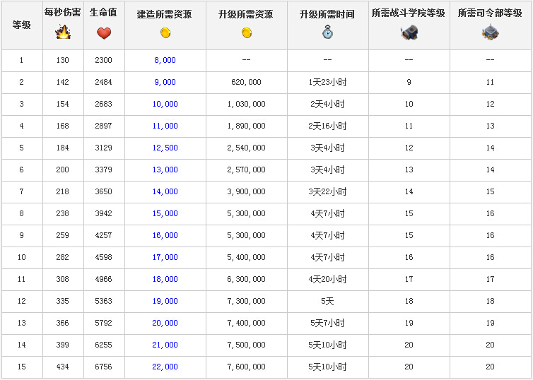 1、坦克升級(jí)詳細(xì)數(shù)據(jù):