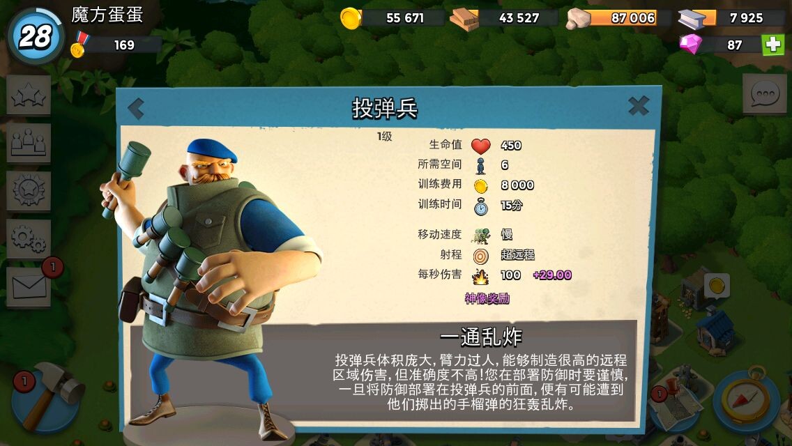 海島奇兵投彈兵是海島奇兵自開測以來唯一新增的兵種,大本的等級需要達到16本方可解鎖哦,下面一起了解下投彈兵如何訓練,費用如何。