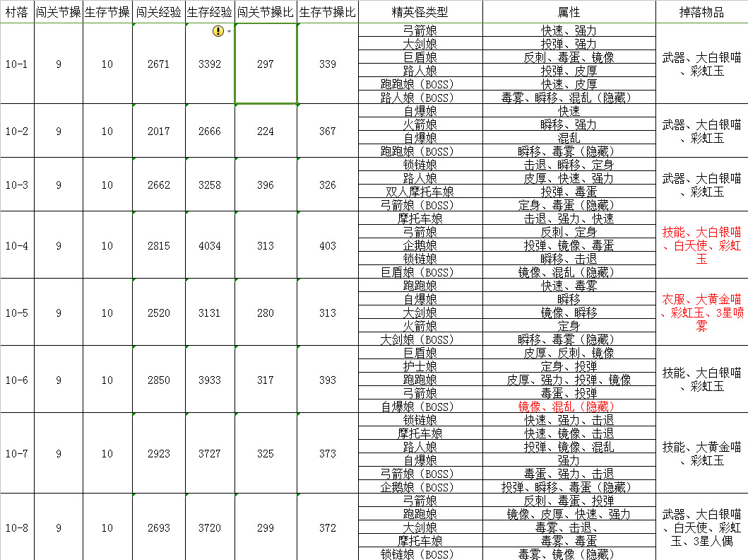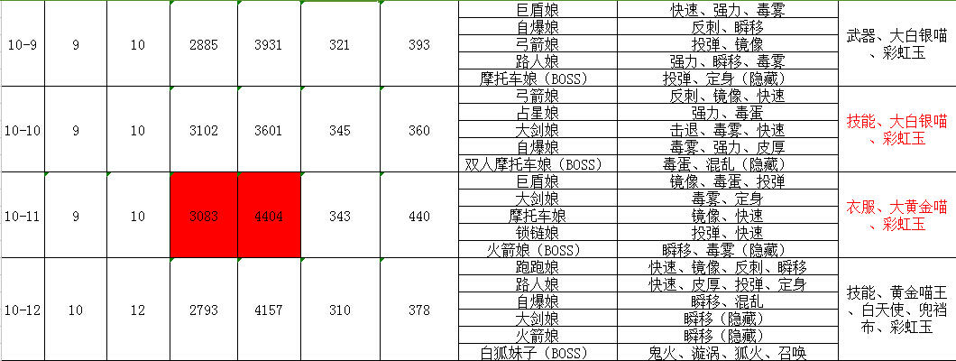 PS:注意10-6標(biāo)紅字的自爆娘BOSS,這里自爆娘BOSS會(huì)和一個(gè)護(hù)士娘同時(shí)刷新出來(lái),然后,你懂的